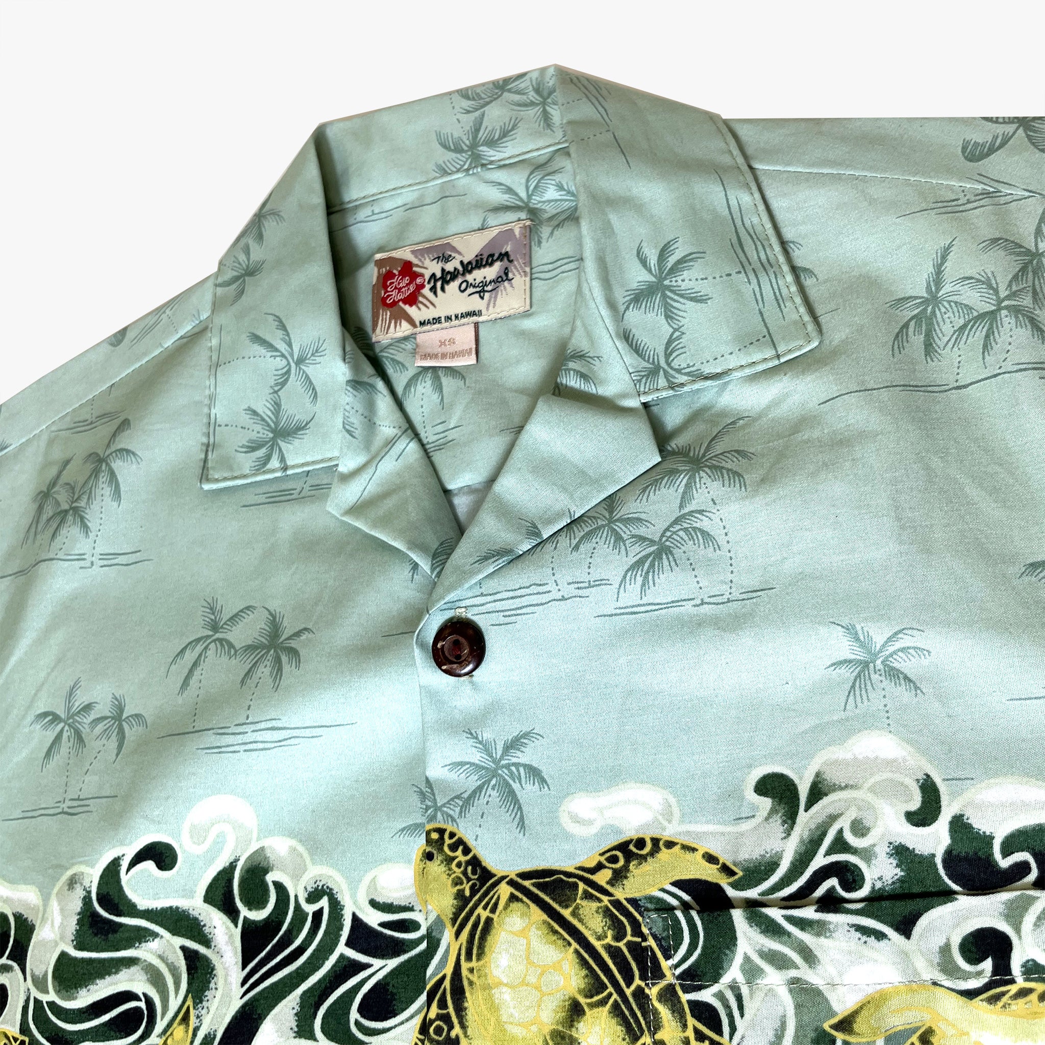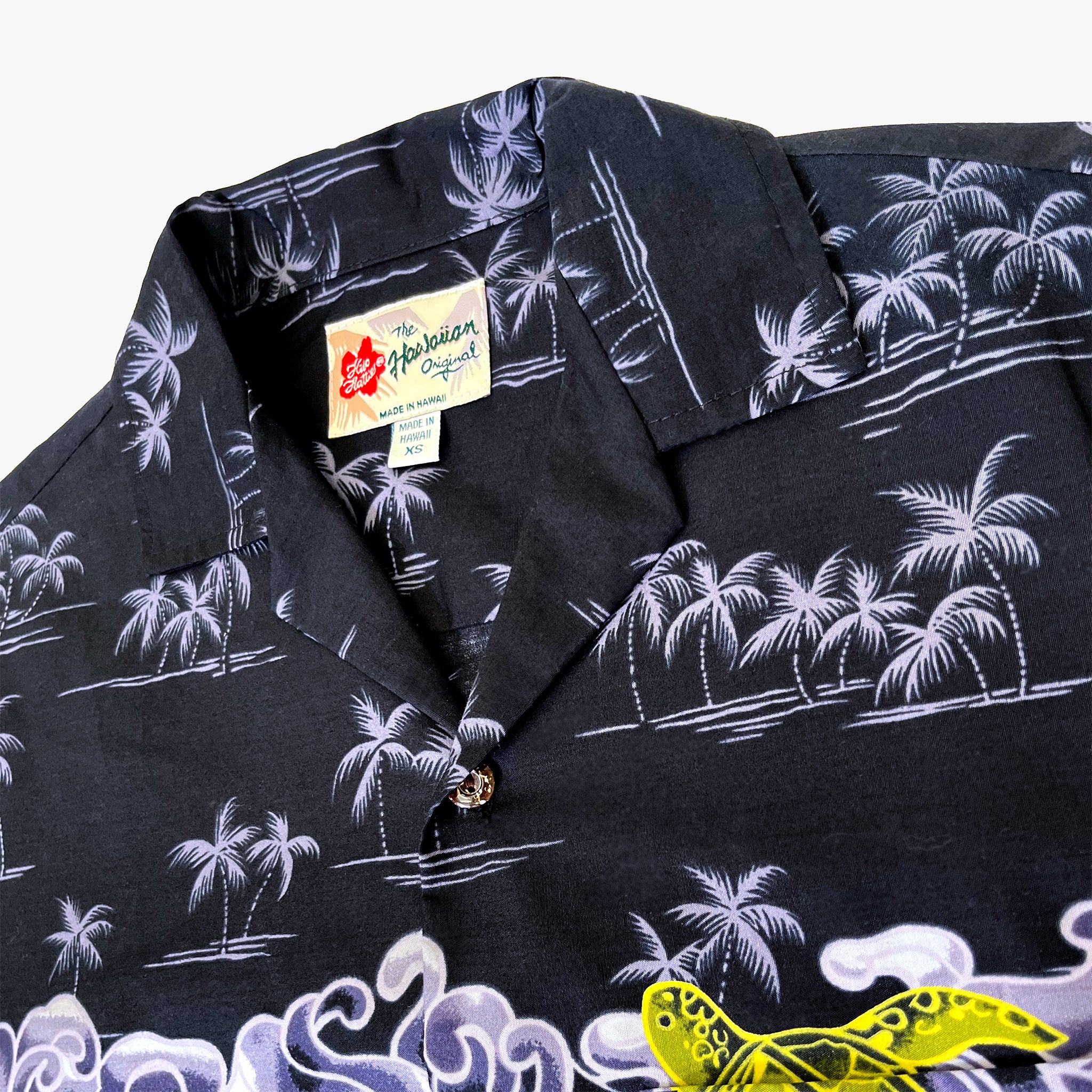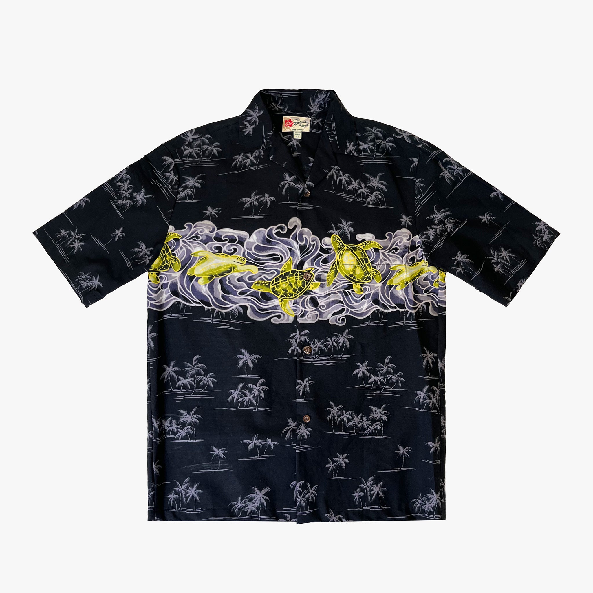 Our Turtle Waves Aloha Shirt captures the serene beauty of Hawaii’s shores with its chestband design featuring graceful swimming honu, the Hawaiian sea turtles. Made in Hawaii from pre-shrunk 100% cotton, this shirt offers comfort and timeless island style. Perfect for any occasion, it’s a popular choice for embracing the spirit of Aloha.