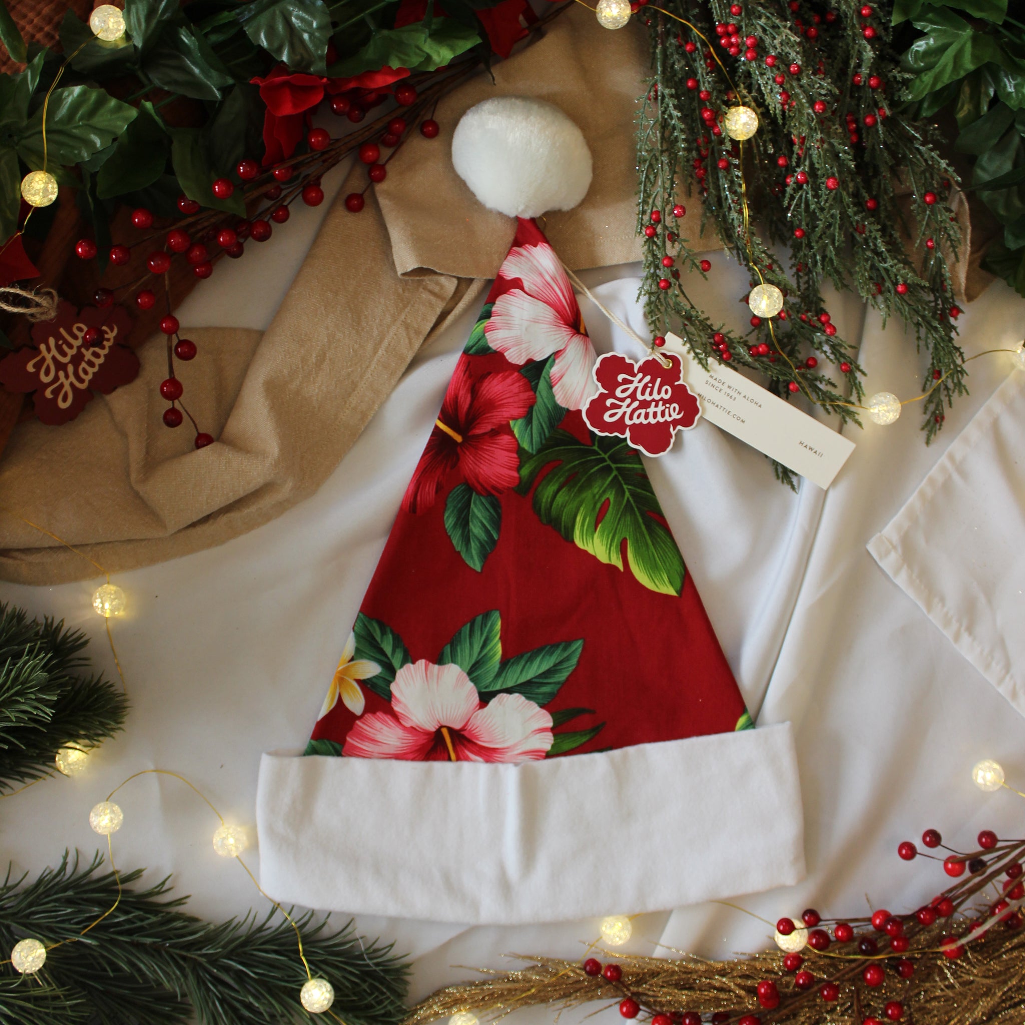 Top off your holiday look with a touch of aloha! The Hilo Hattie Santa Hat is made in Hawai‘i in our signature prints. Whether you’re celebrating with family, friends, or co-workers, this festive hat blends holiday cheer with island style. Say Mele Kalikimaka in true Hilo Hattie fashion and make your holidays unforgettable.