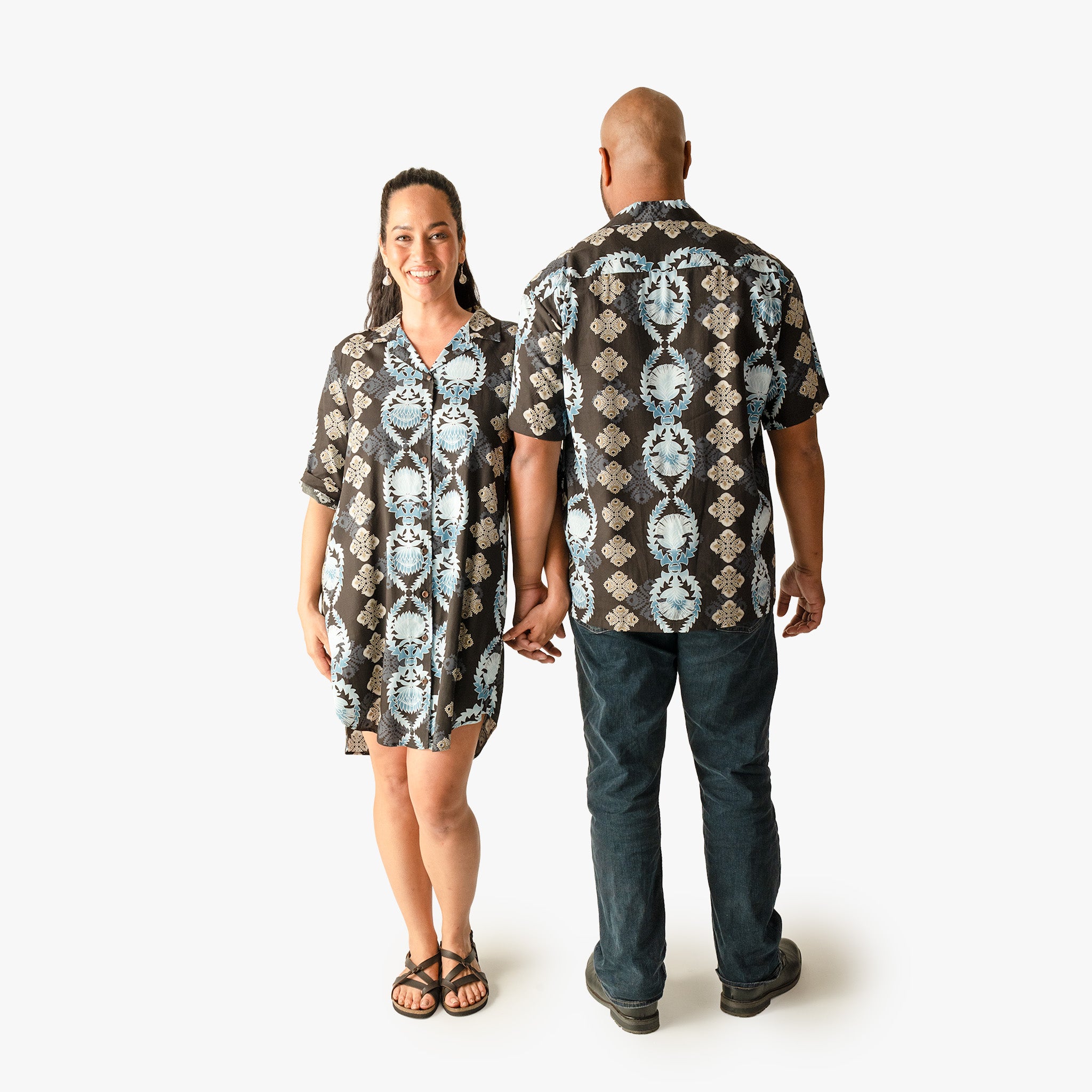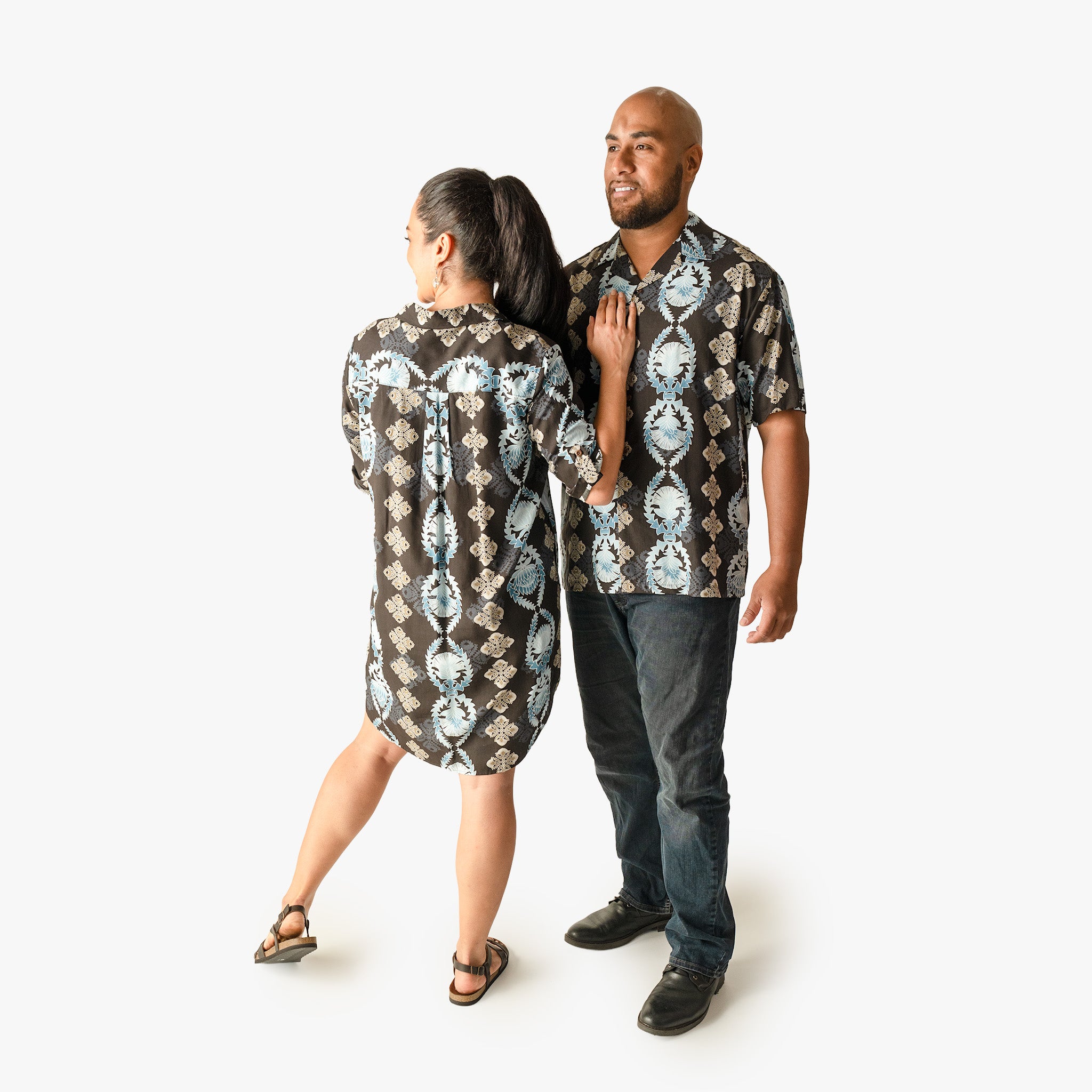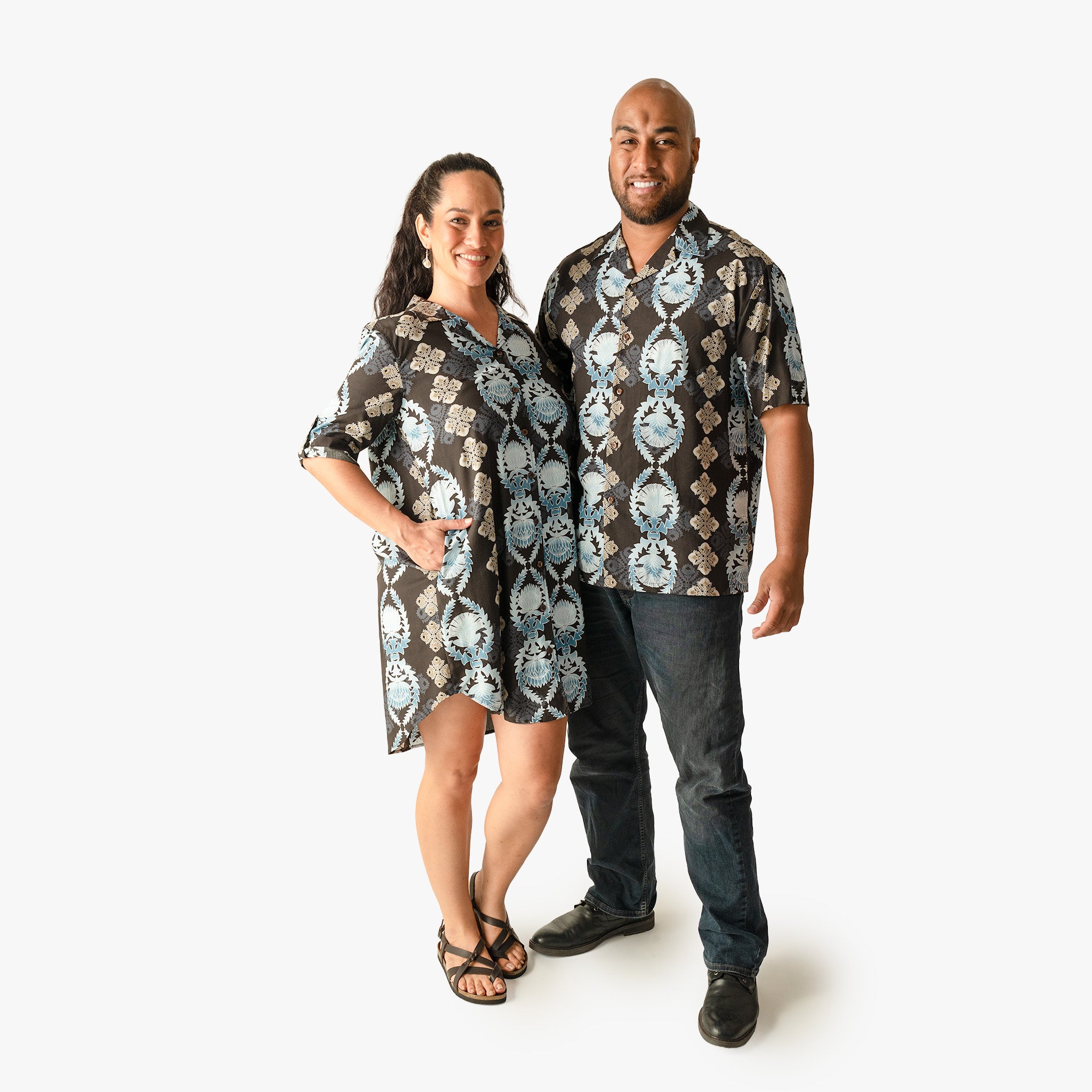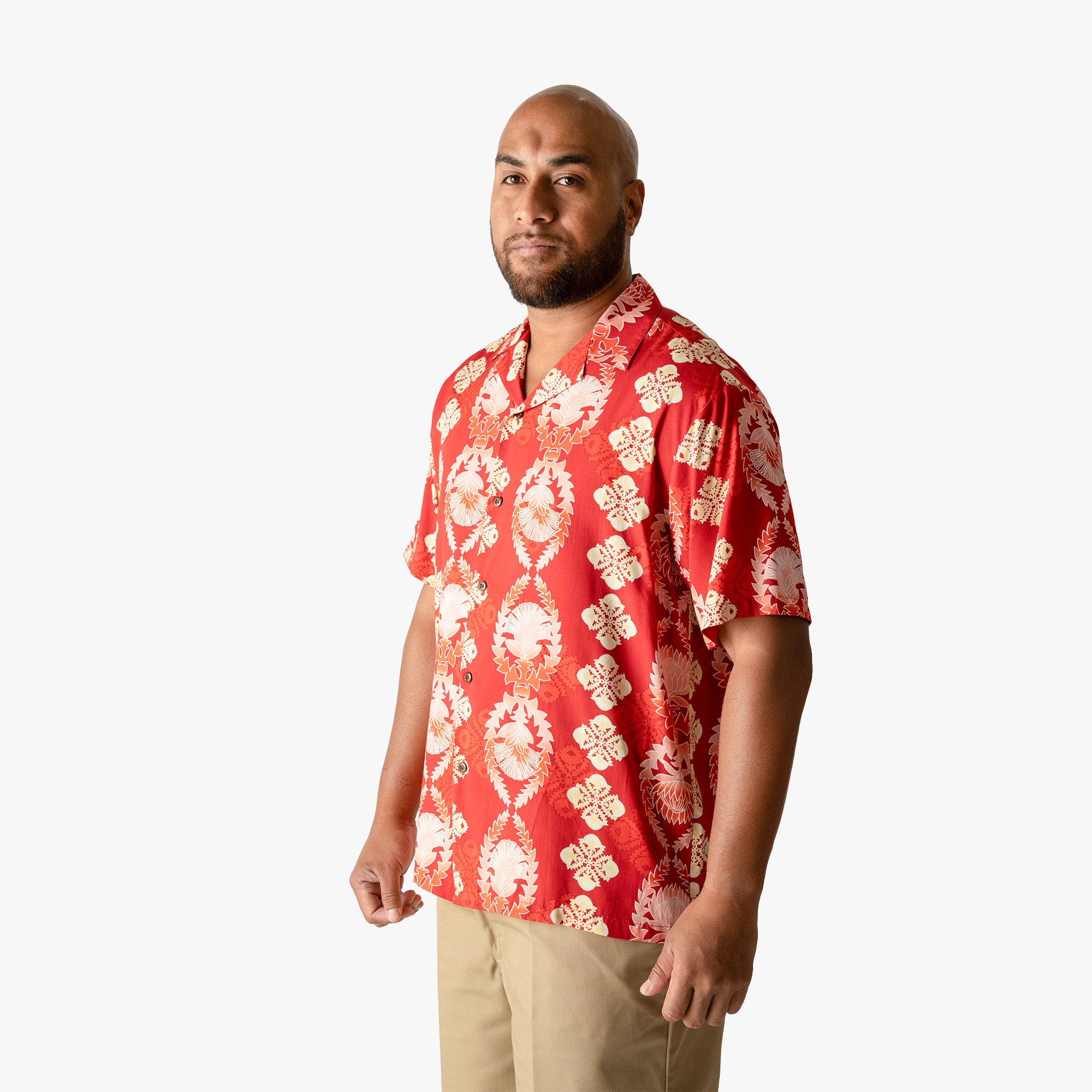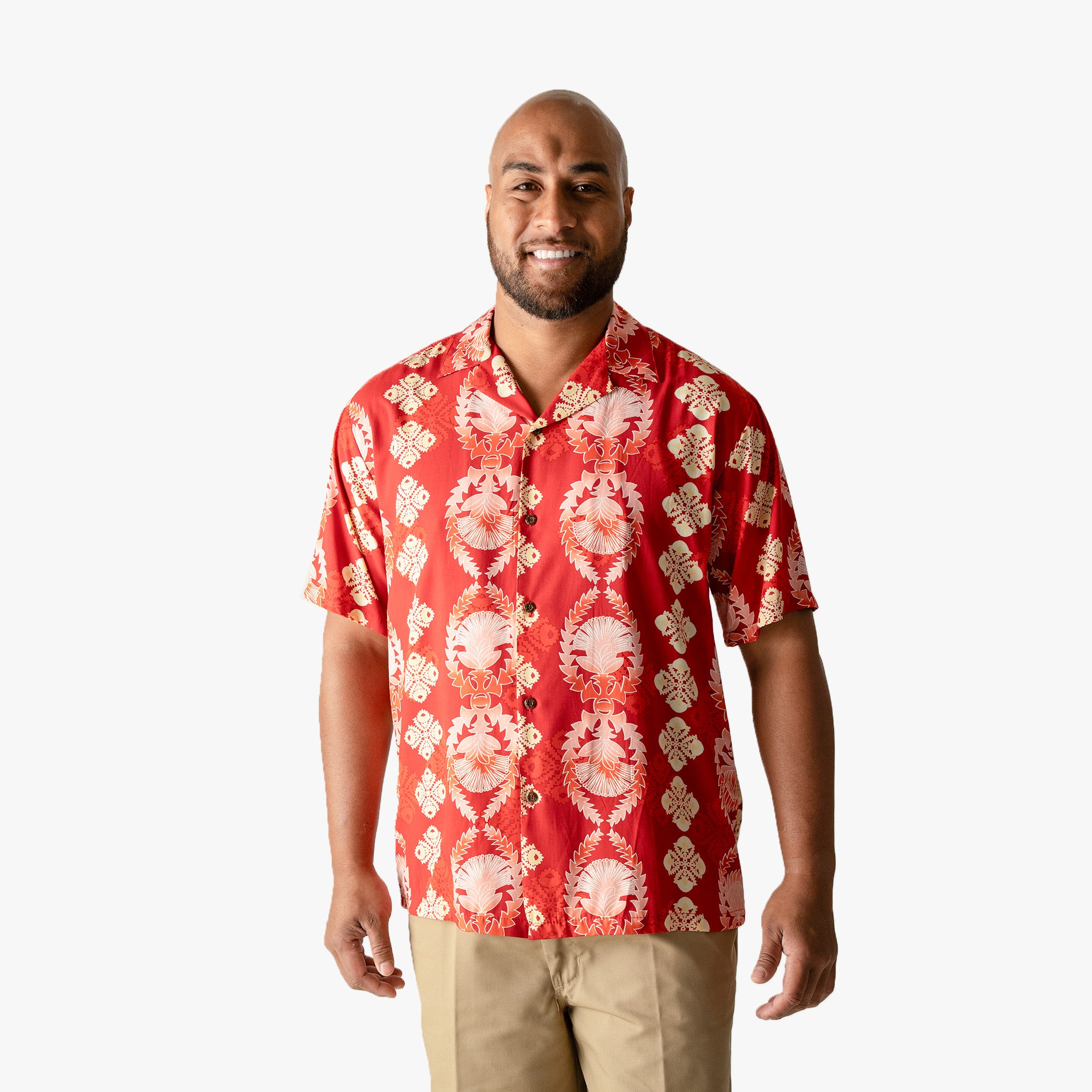The Lehua Quilt Aloha Shirt draws from the tradition of Hawaiian quilting, one of the islands' most enduring art forms. The quilt design runs through the print in Red, Black, and Navy. Available in sizes S-4XL. Pairs with the matching Lehua Quilt Mu'umu'u and Aloha Shirt Dress for a complete family look. 100% rayon. Made in Hawaii.