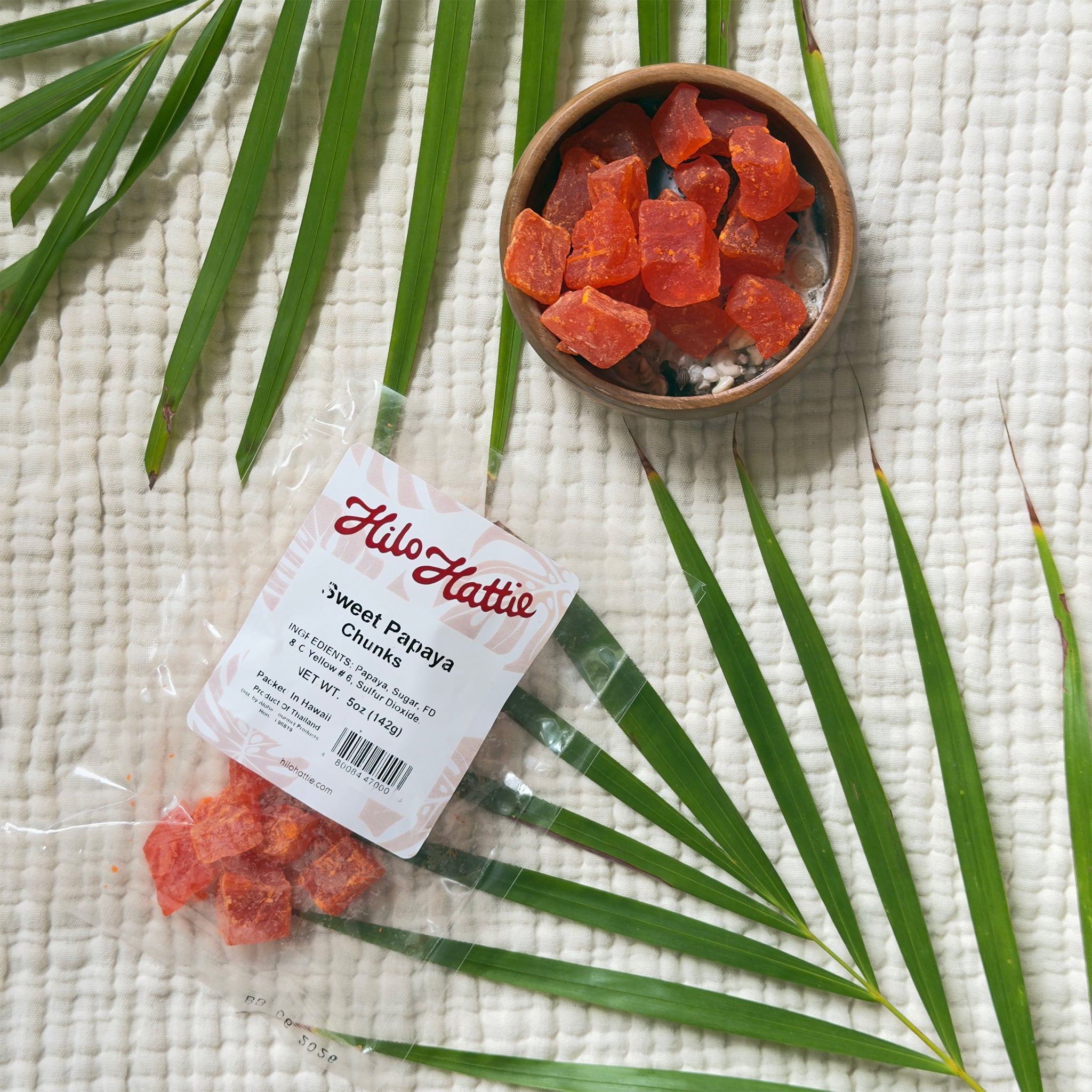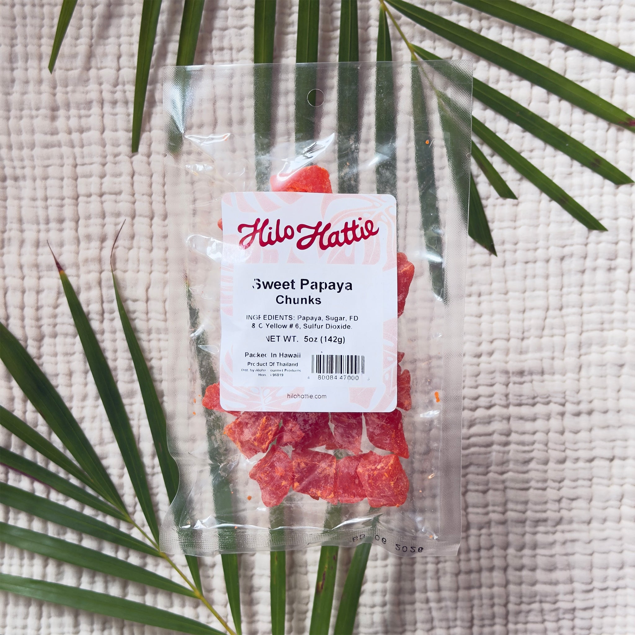 Tropical sweet and tart papaya chunks are covered in a light layer of sugar for added sweetness and are a great treat for entertaining at home or on the go. 5oz bag